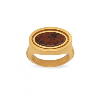 Davvar Rotating Signet Ring in Brushed Gold with Red Obsidian