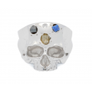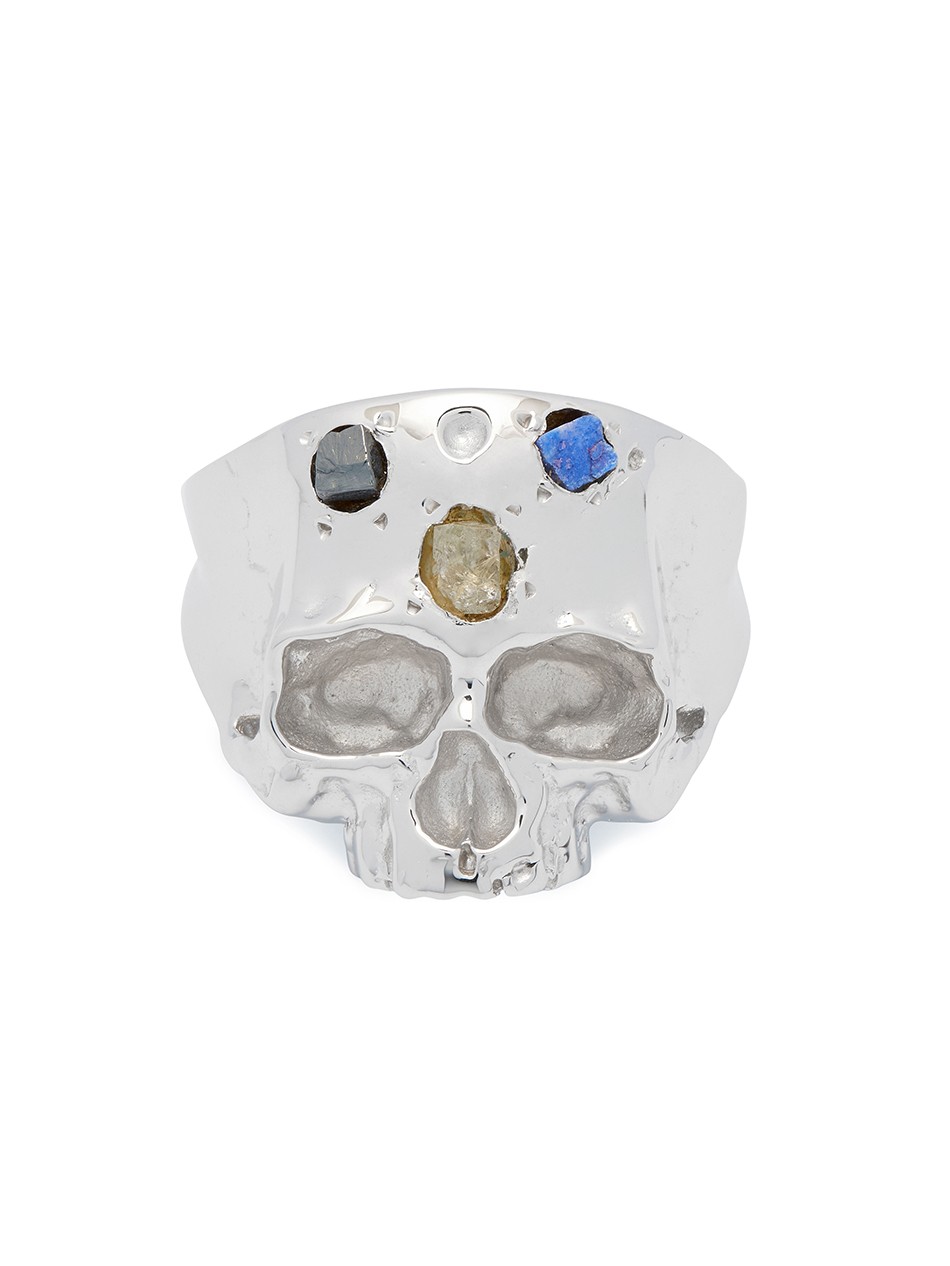 Disfigured Medius Skull Ring In Silver And Speckled Stones