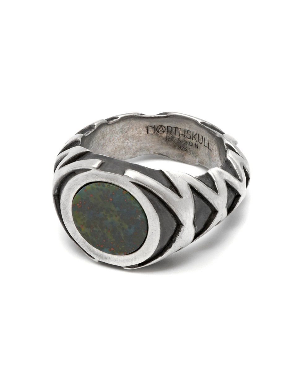 Woto Pattern Ring in Oxidised Silver with Alpi Marble