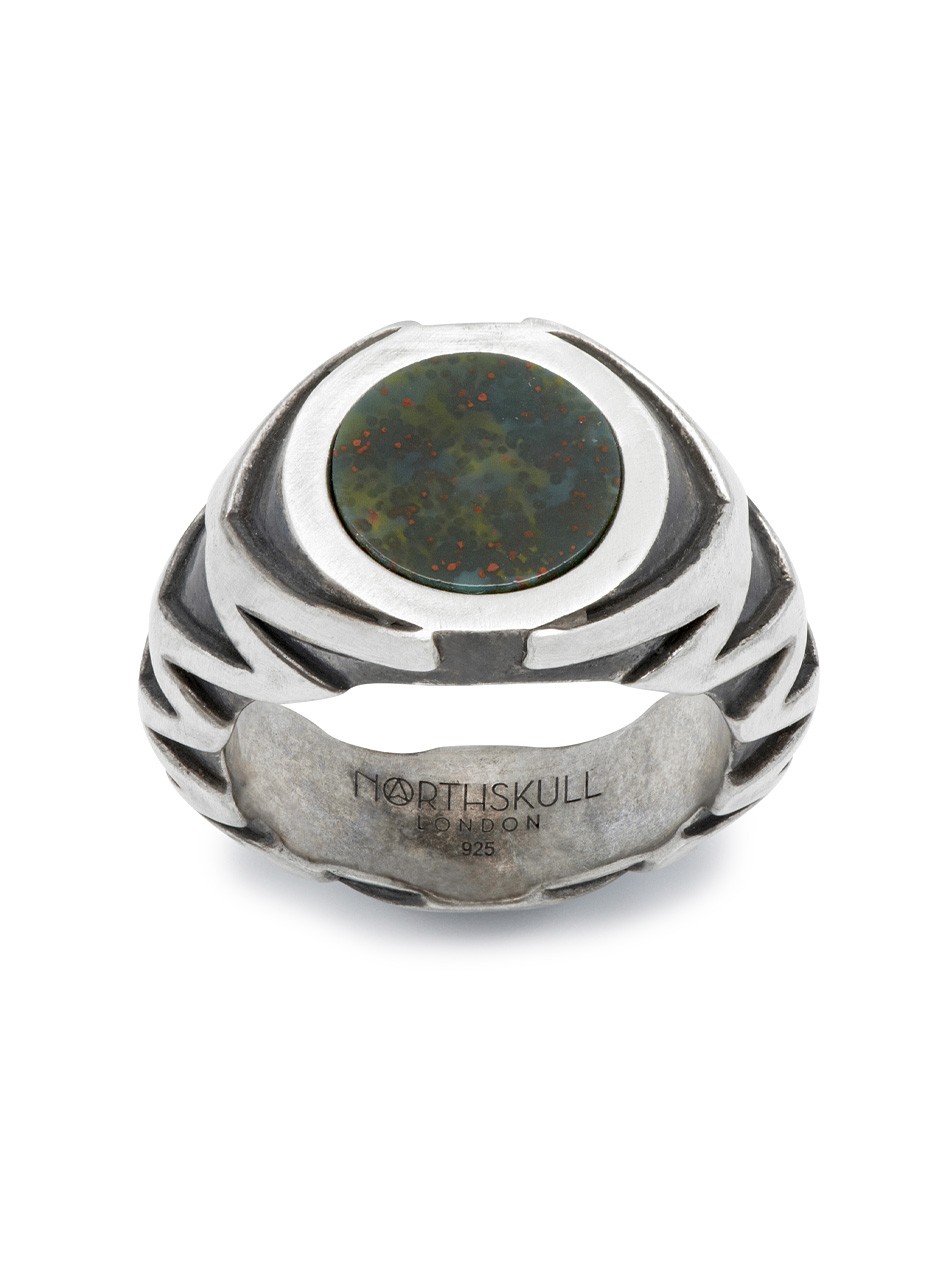 Disfigured Medius Skull Ring In Silver And Speckled Stones