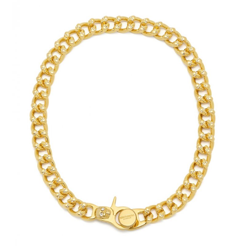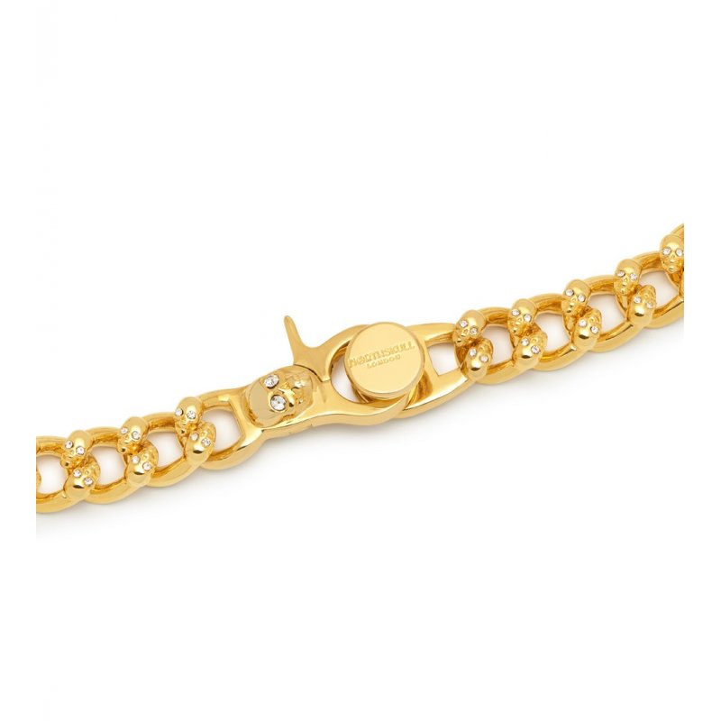 Atticus Skull Curb Chain Necklace with Clear Crystals in Gold