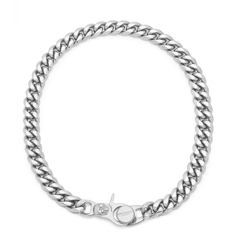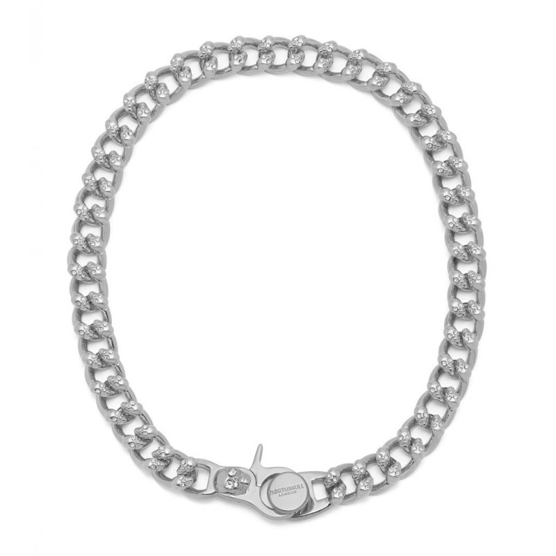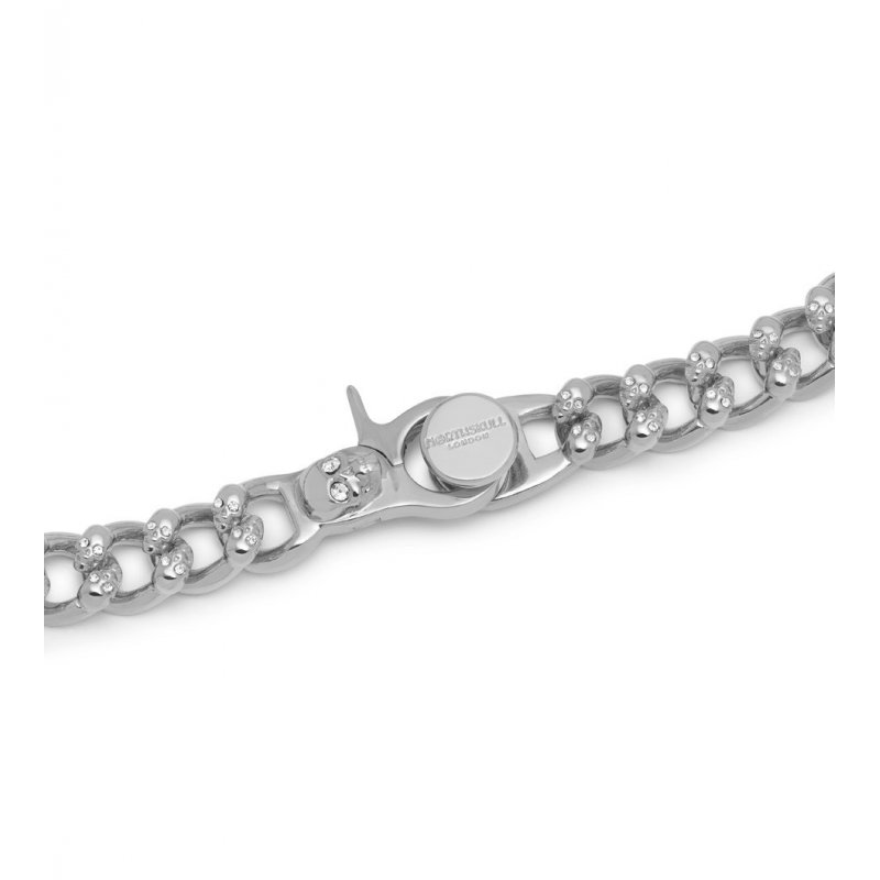 Atticus Skull Curb Chain Necklace with Clear Crystals in Silver