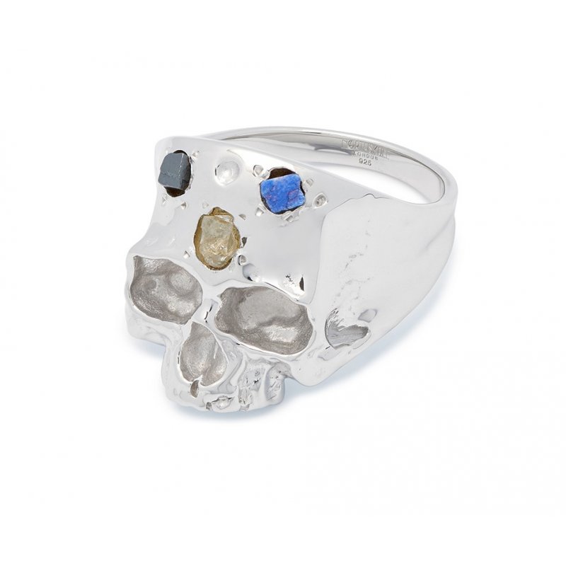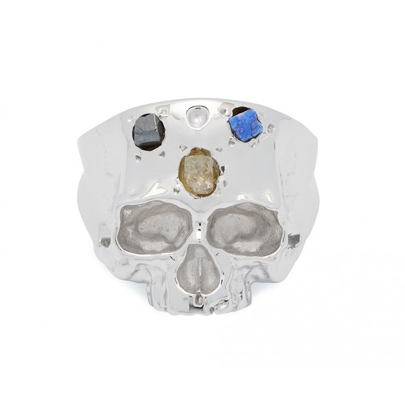 Disfigured Medius Skull Ring In Silver And Speckled Stones
