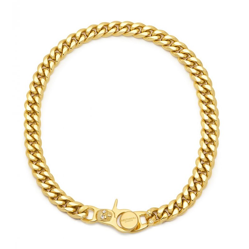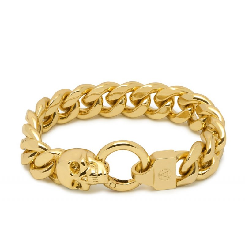 Atticus Skull Curb Chain Bracelet in Gold