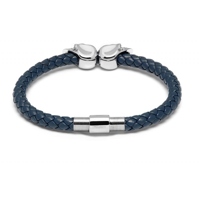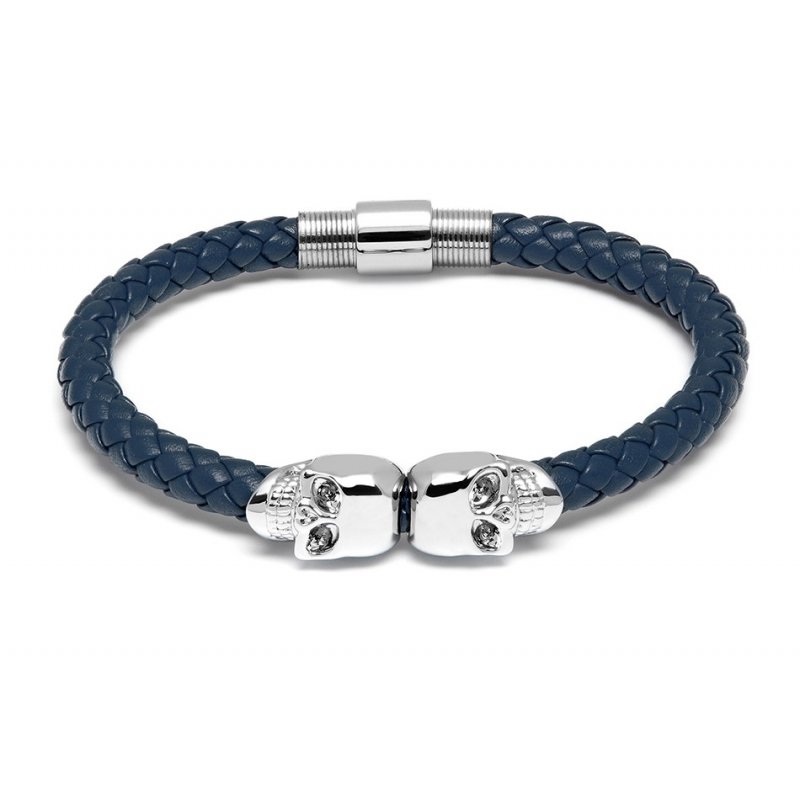 Denim Blue Nappa Leather / Silver Twin Skull Bracelet