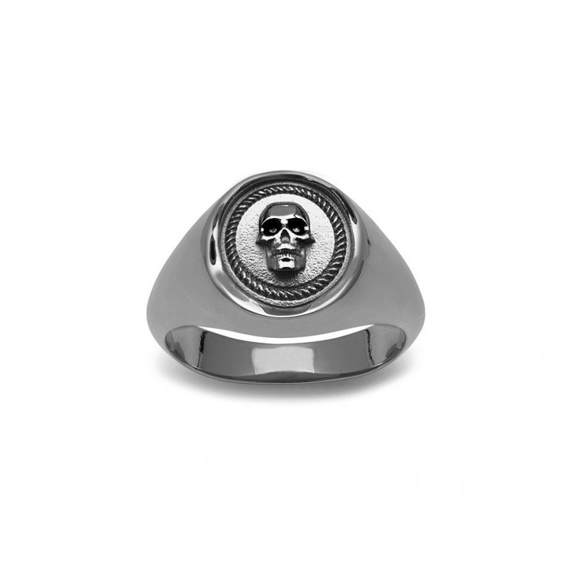 Atticus Skull Seal Pinky Ring in Gunmetal