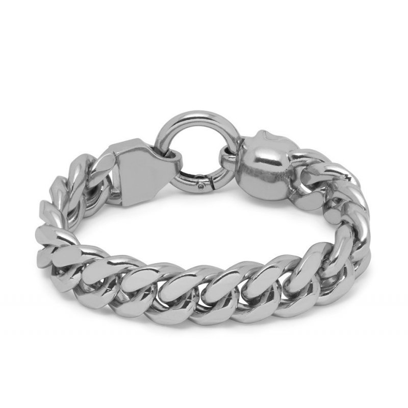 Atticus Skull Curb Chain Bracelet in Silver