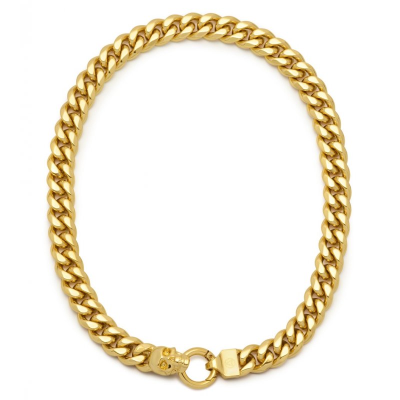 Atticus Skull Curb Chain Necklace in Gold