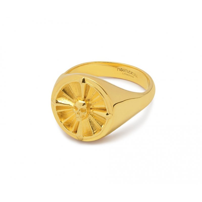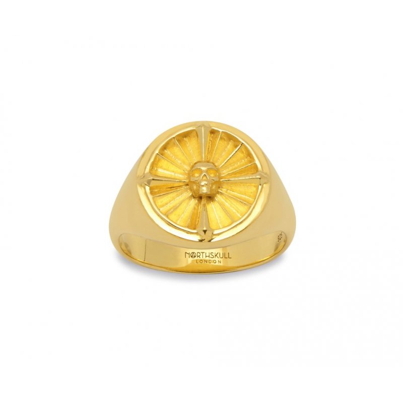 Atticus Skull Compass Pinky Ring in Gold
