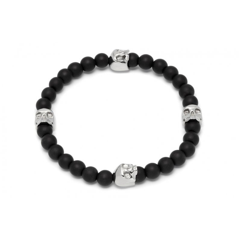 Black Onyx & Silver Quatro Skull Charm Bracelet