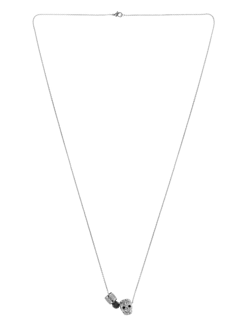 Atticus Skull Curb Chain Necklace with Clear Crystals in Silver