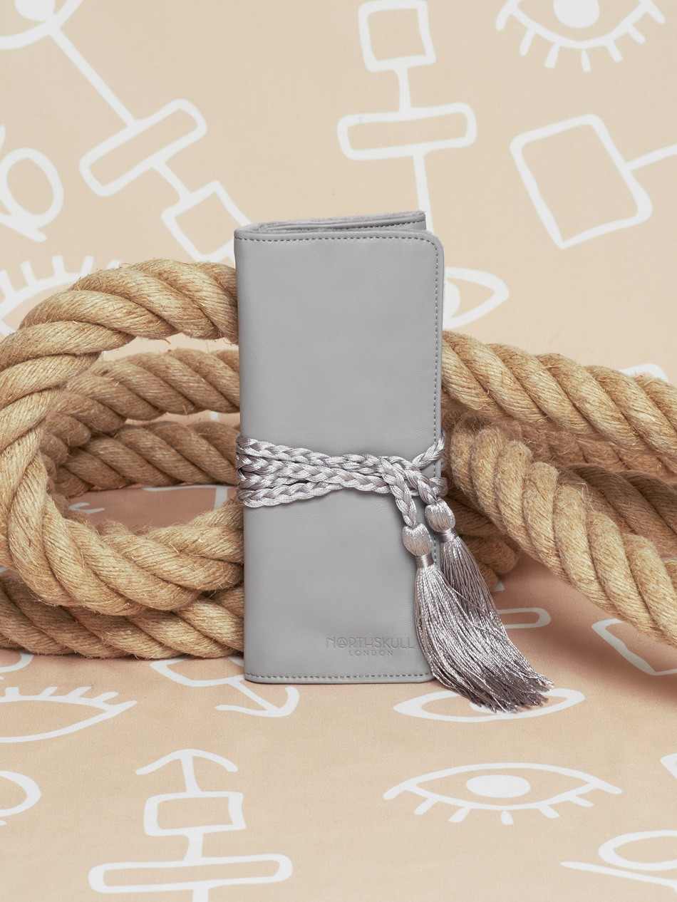 Make our Grey Leather Sirocco Jewellery Roll a must-have on your travel accesssories list. Featuring soft grey cow leather, open the plait tie to reveal several handy compartments to transport your jewellery in style and ensure your pieces do not get tangled. Simply roll and pop this lightweight piece into your hand luggage, vanity case or suitcase.