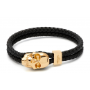 Atticus Skull Hook Leather Bracelet in Black and Gold