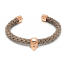 Atticus Skull Leather Cuff in Taupe and Rose Gold