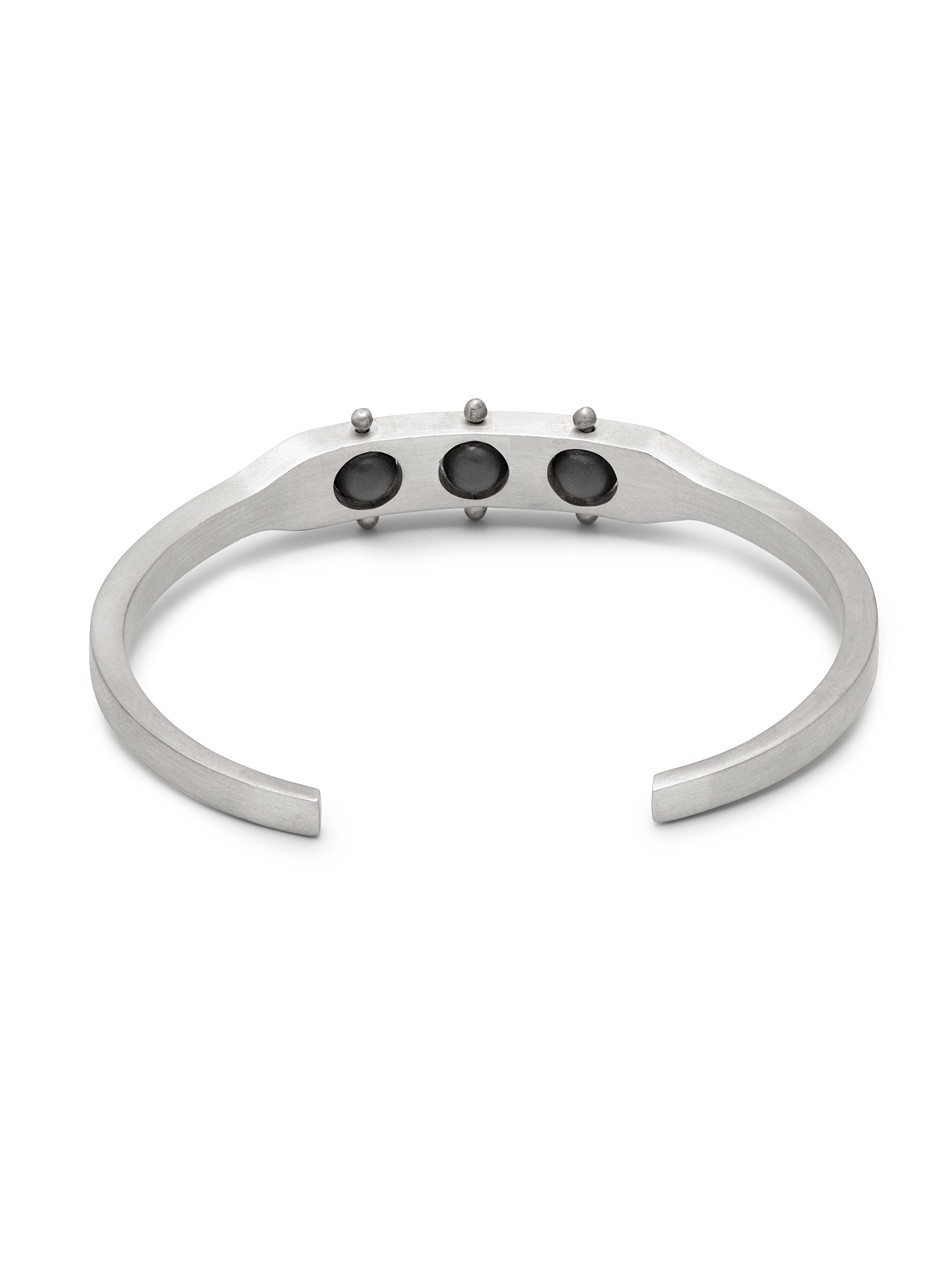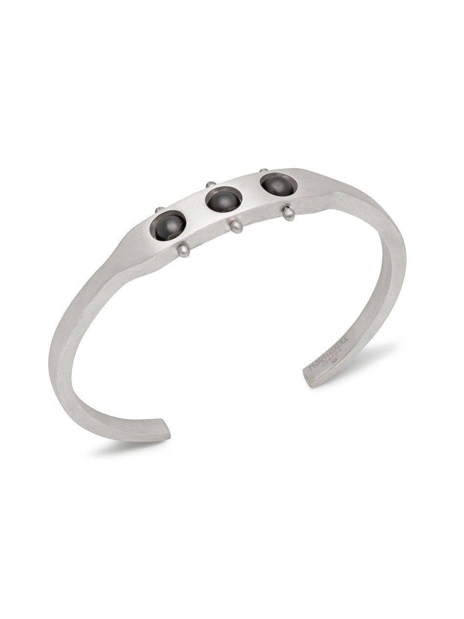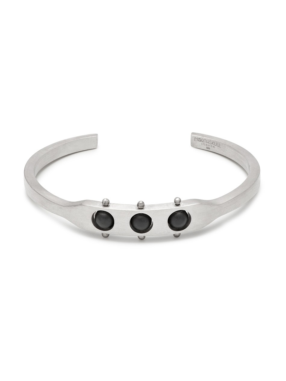 The Novum Cuff is a distinct Northskull design with a masculine edge. Reworking the shape of a classic cuff with an unusual form finished with three natural stones for added interest, this Northskull creation will infuse smart sophistication to any outfit.
