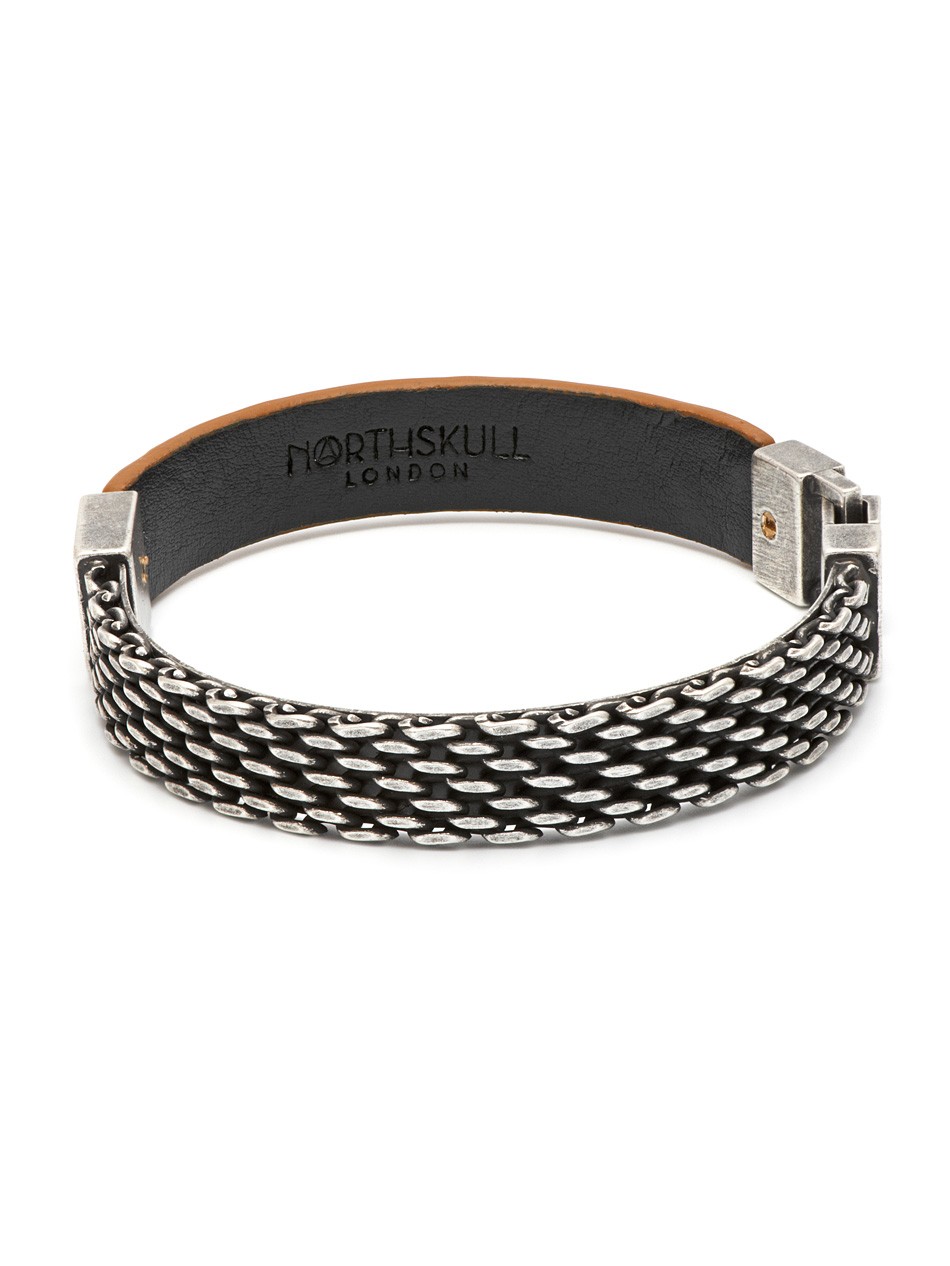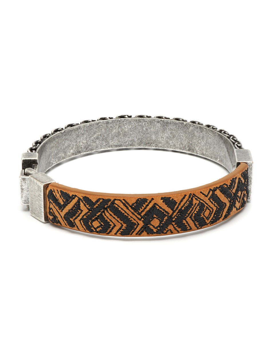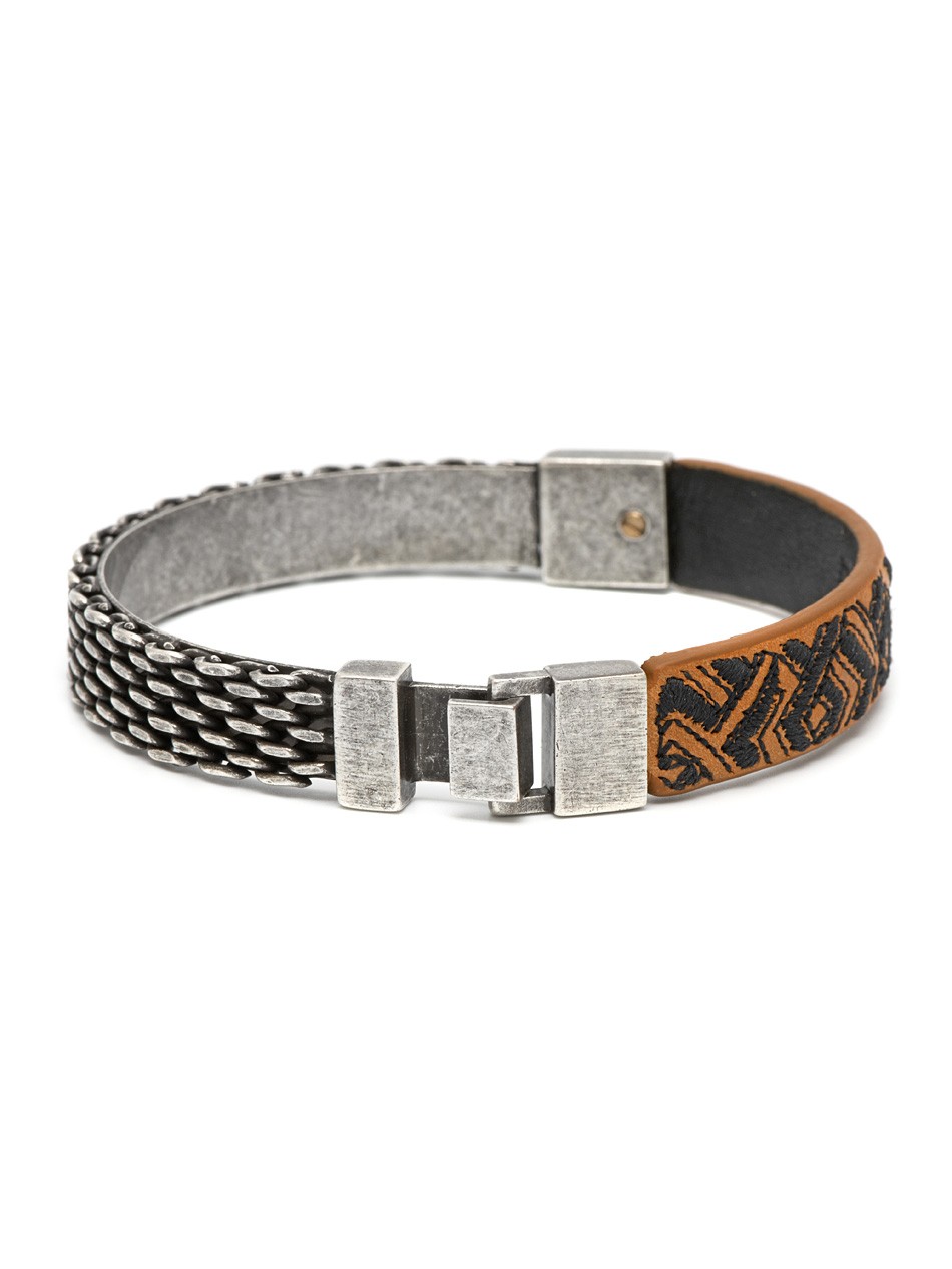Woto Embroidered Tag Bracelet in Burnt Orange and Aged Silver