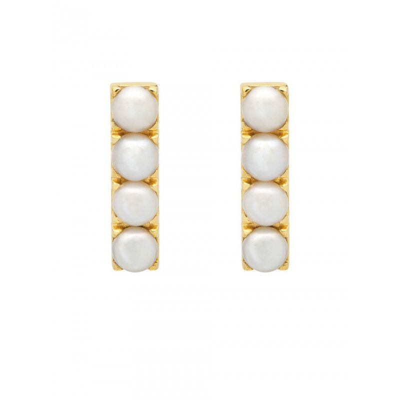 Pearl Bar Stud Earrings in Gold