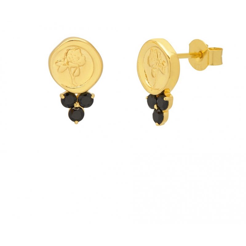 Rose Seal Earrings in With Black Swarovski Crystals in Gold