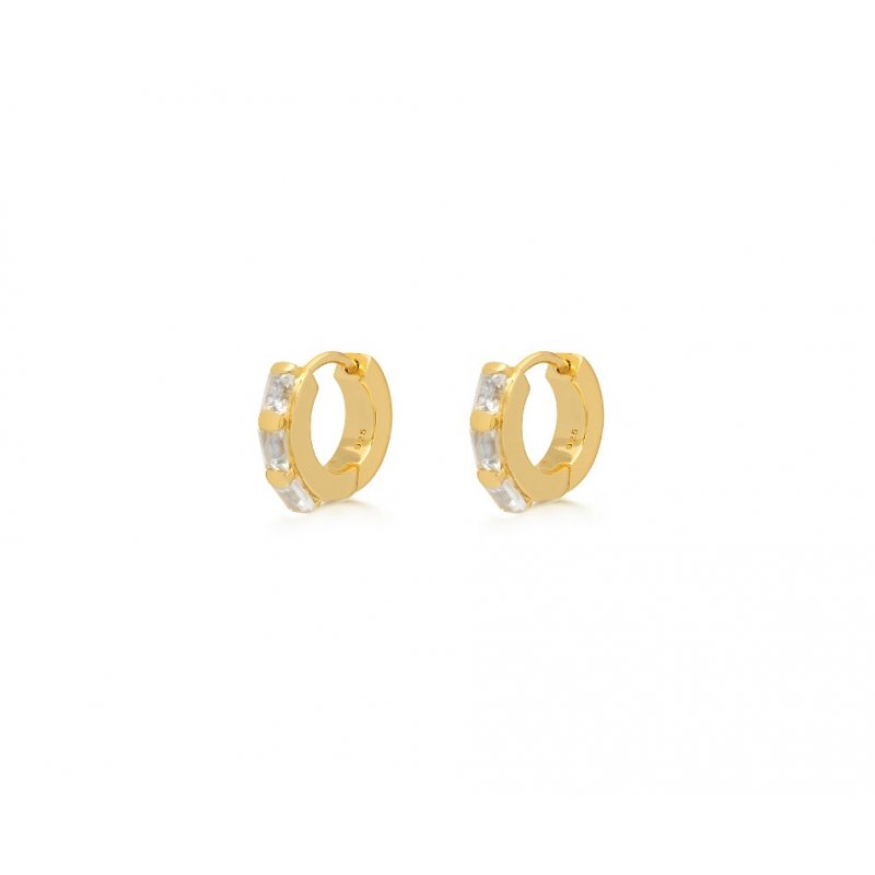 White Topaz Mini Hoop Earrings in Gold
