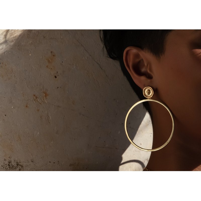 Atticus Skull Seal Statement Hoop Earrings in Gold