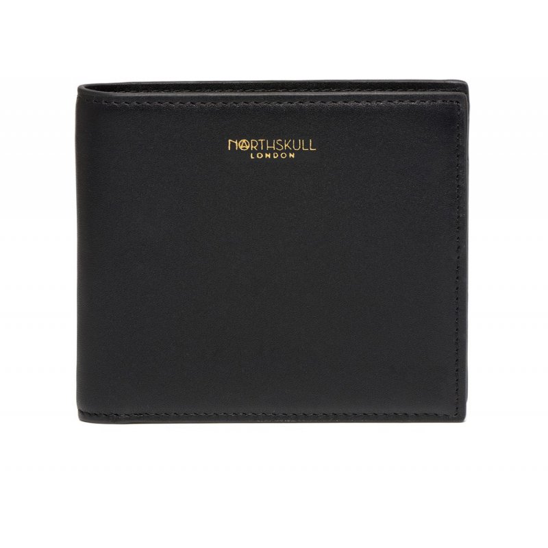 Smooth Black Leather Wallet - Gold Logo