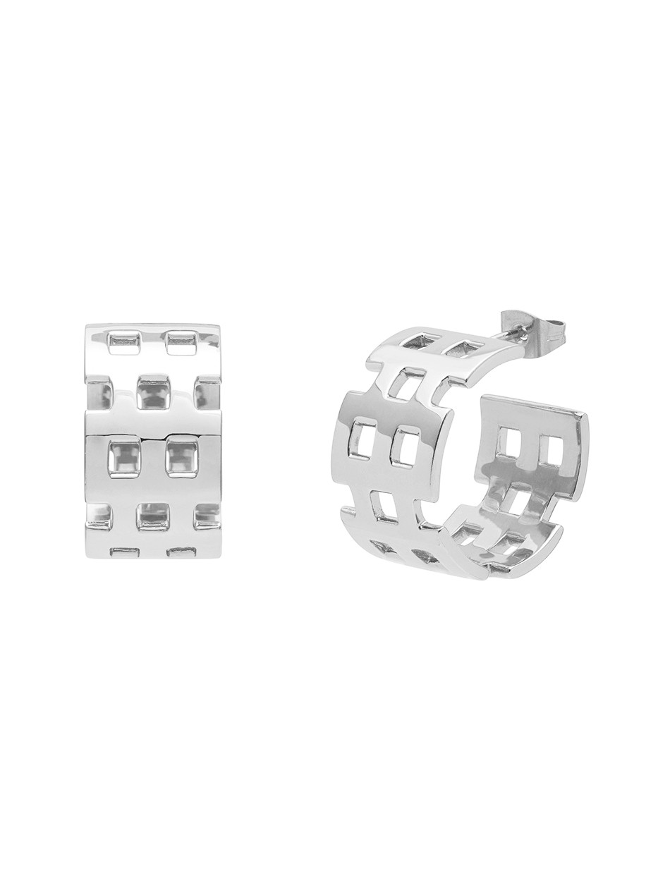 Designed to be paired with the Timepiece bracelet and Necklace, these earrings will allow you to achieve a full, clean look inspired by the classic designs of the 80's and bring a little nostalgia to your style.