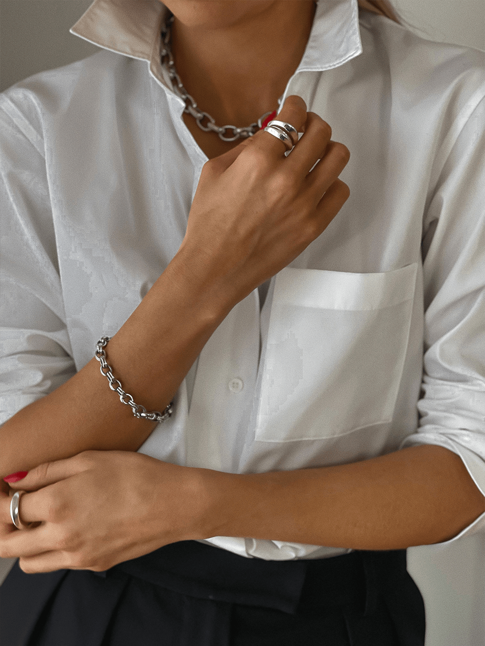 Lydia Tomlinson Racine Chain Ring-Clasp Bracelet in Silver